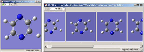 For molecule groups containing more than one molecule, there are two display modes. Single view mode displays a single molecule at a time. The current molecule number appears in the toolbar.