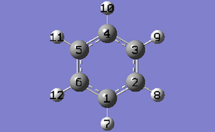 2-3 Click anywhere in the empty view window to create a benzene molecule.