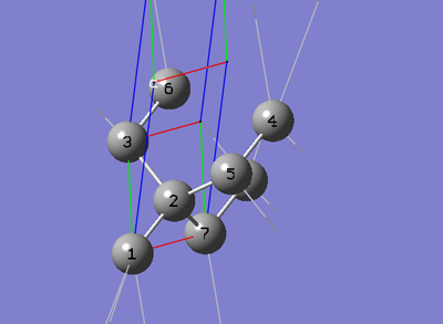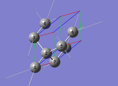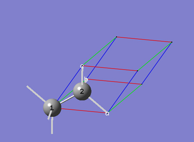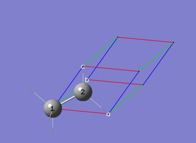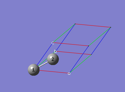 6-3 In the Cell tab of the PBC dialog, push down the Place button and select b (0,1,0) instead of a (1,0,0) to enable placement of the head of the "b" lattice vector at any atom selected in the view window using the mouse. In the view window, click on atom 3.