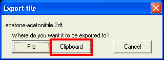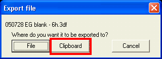 The following dialog will ask you where you want to put the data: a file or the clipboard. Format of exported data is identical for both.